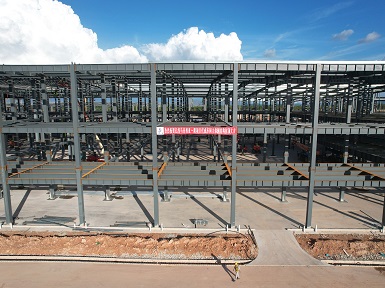 亿纬马来西亚一期项目施工总承包工程化成车间二标段主体钢结构顺利封顶