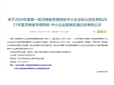 开云官方网页版获评“专精特新企业”